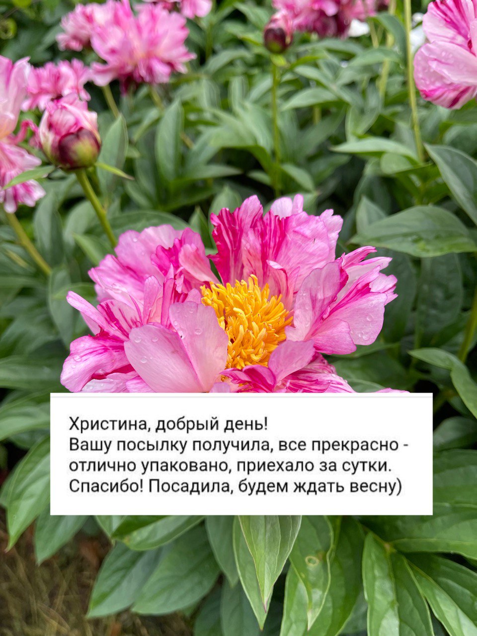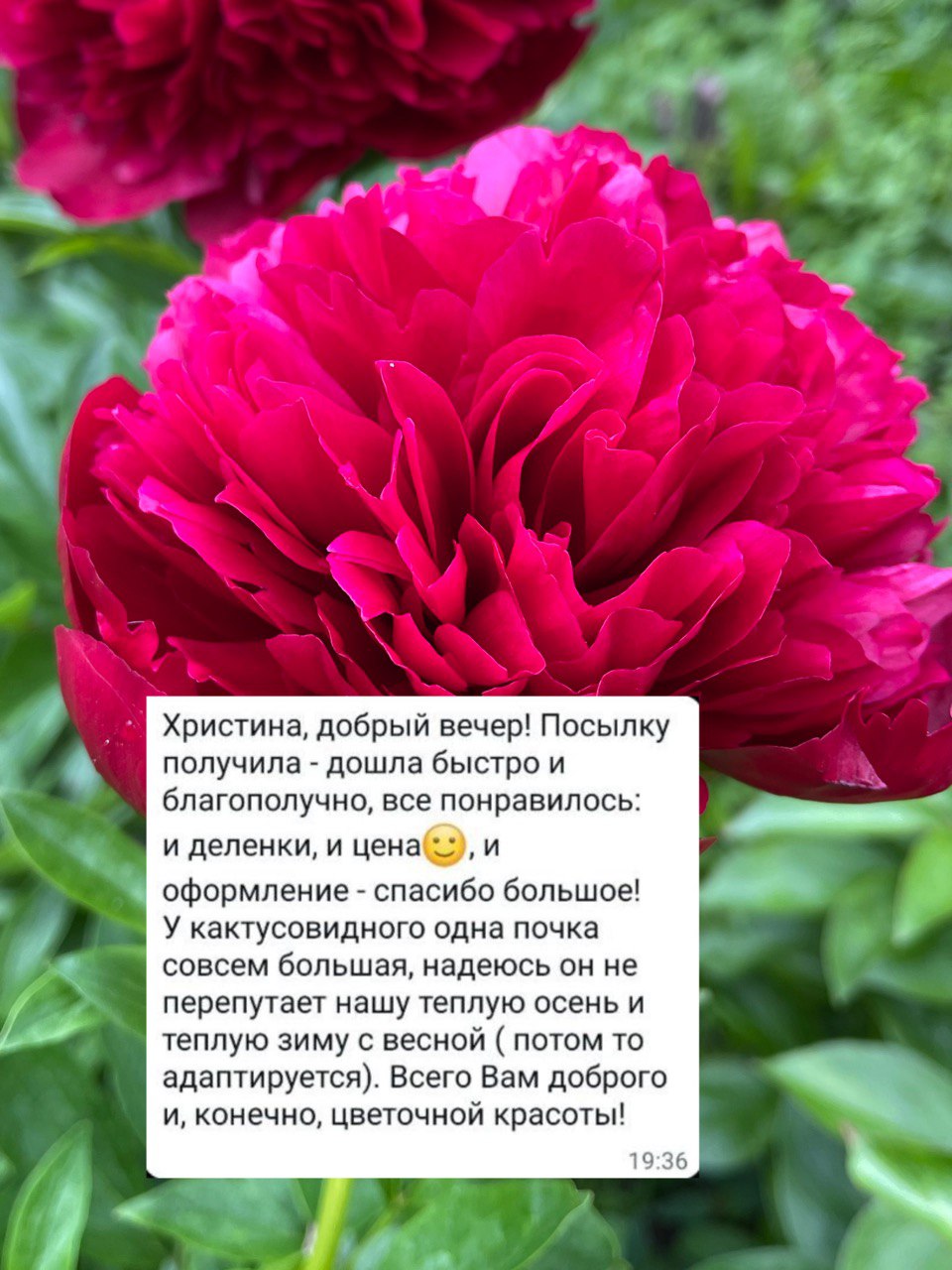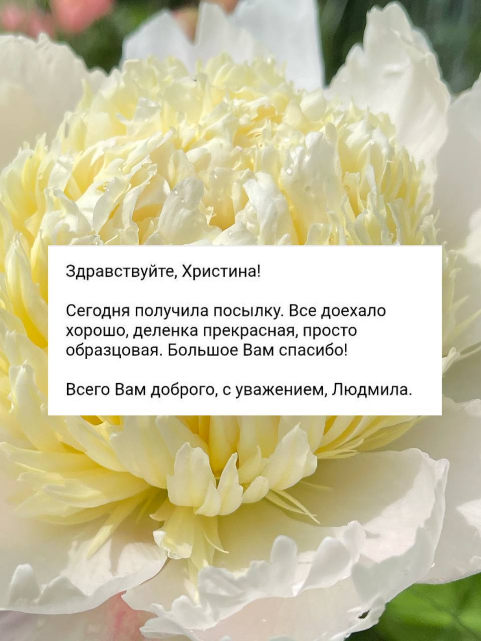 Мы заботимся о том, чтобы наши пионы поступили к своим новым владельцам в наилучшем виде. А их благодарные отзывы очень ценны для нас: