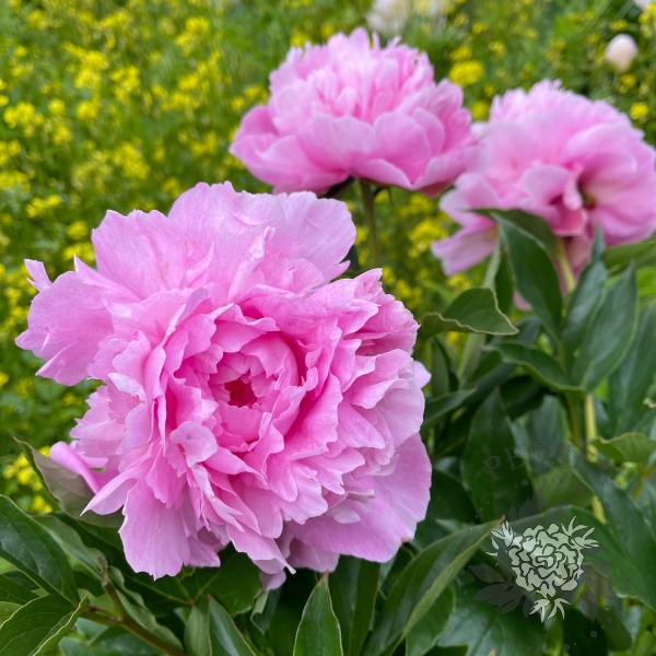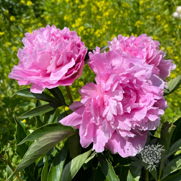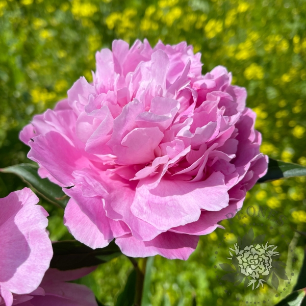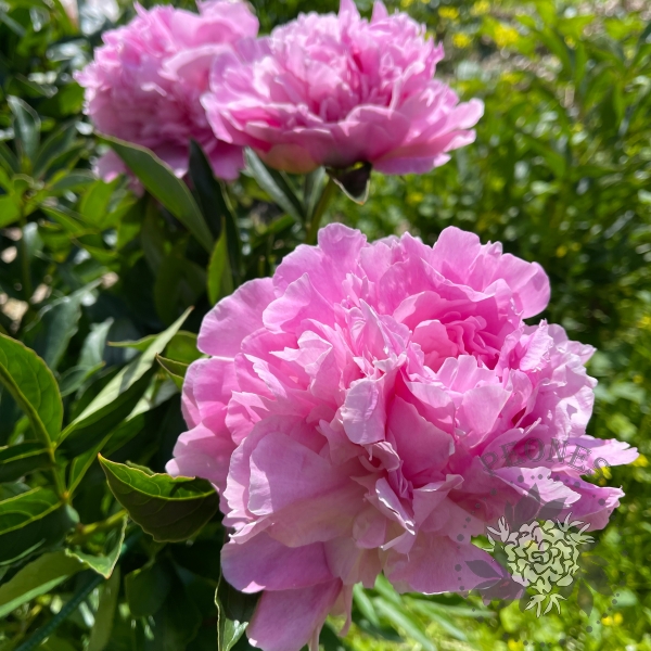 Невысокий пион для переднего плана с махровыми ярко-розовыми цветами. Листья узкие, запах слабый приятный. Цветет в поздние сроки.